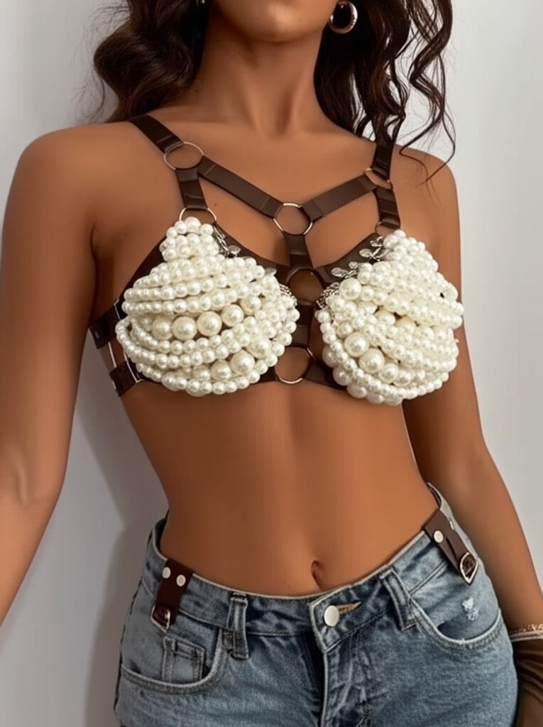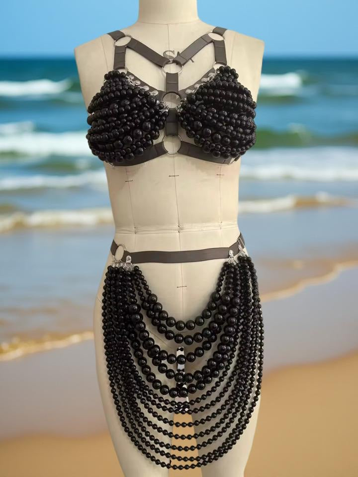 This exclusive set features the signature YTUSI Harness and matching Belt, reimagined with extended pearls that cascade from front to back. Designed to be worn at the waist, hip, or side, the LUX Collection brings bold elegance and modern sensuality into perfect balance.